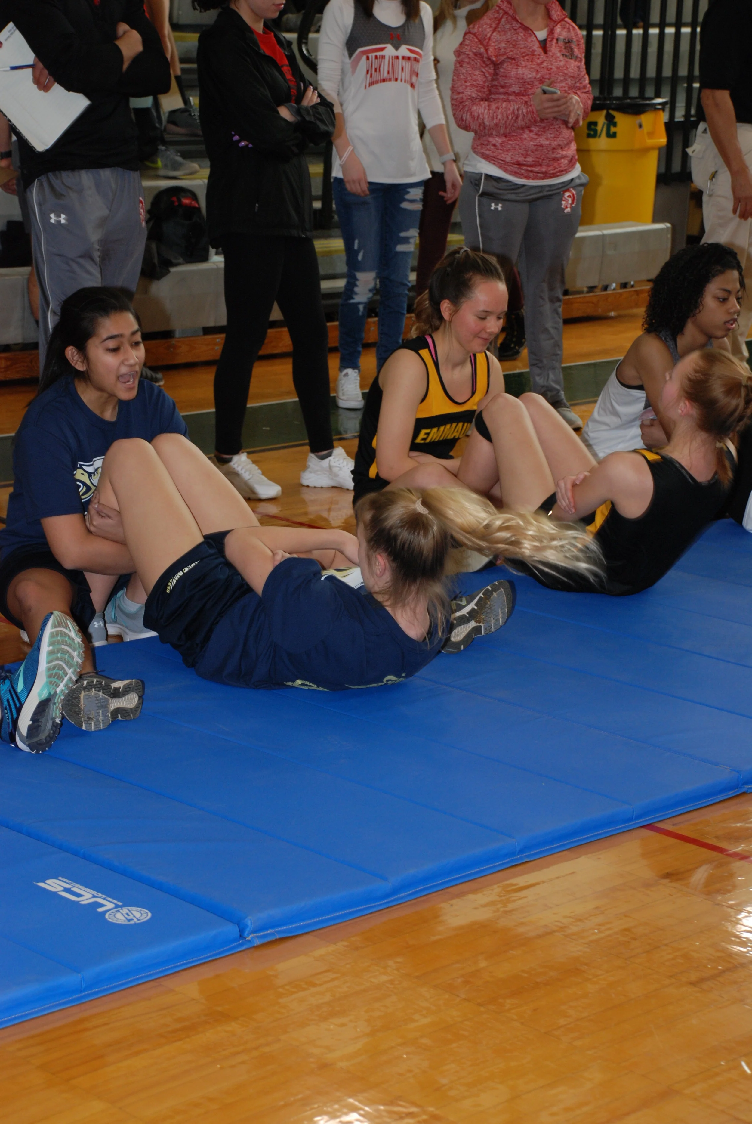 Five members of the Marine Corps League Lehigh Valley Detachment 296 assisted Coach George Gibbs during the St Patrick’s Day competition. Our assigned job was to keep the teams moving from one fitness measure station to another. The five teams participating each had a Boys and Girls team. They started with a timed – crunch station, on to a timed – push-up station, a standing leap station – 3 tries, then on to a timed – pull-up station and lastly a timed run of 5 lengths of gym. We witnessed the drive for each team – the encouragement exhorted by their team mates. It is good to see that there are those who are willing to push themselves for the sake of their team and for their own personal satisfaction. Before the competition started, a check in the amount of $500.00, was presented from Lehigh Valley Detachment 296 to Coach Gibbs. We also announced that we were there in memory of one of our deceased Detachment members, Marine Henry Brokate. We also mentioned Hank and Carol’s children participated on the Emmaus High School team during their high school years. Coach Gibbs appreciated our donation and extolled the crowd to recognize the sacrifice of those who have served in the U S military for their protection and freedom. A resounding applause was offered after his comments. We would like to recommend that our detachment members take the opportunity to help out with these events and to support the High School students that are participating. It is well worth your time and helps us to support our communities. Detachment members that helped with the event are: Fred Babcock, Michael Donatacci, Ria Mattix and Randy Schueck and Joe Malia. - Chaplain Joseph Malia
