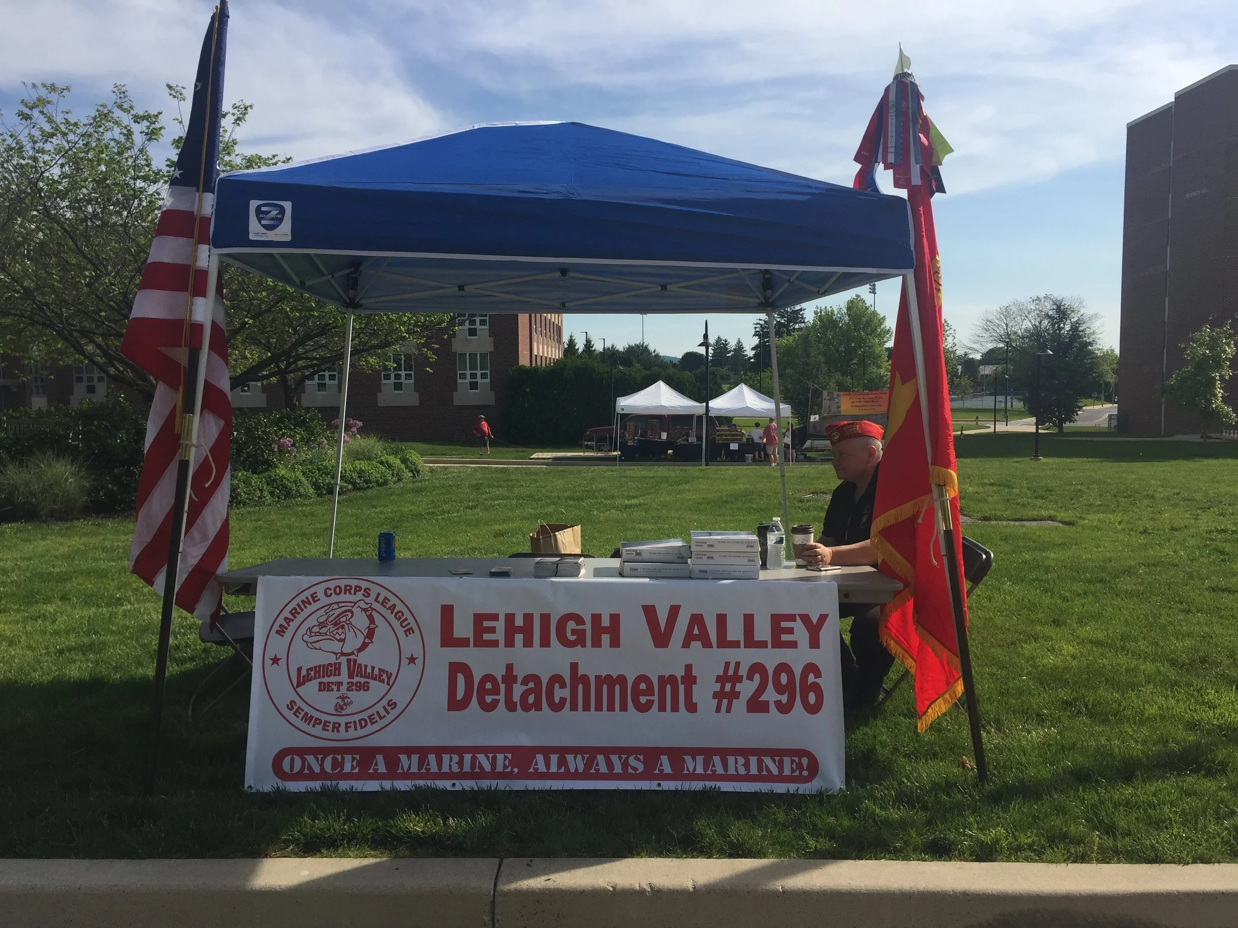 On May 17th, members of the Lehigh Valley Detachment participated in the Minsi Trails Council Boy Scout Jambo. This event only happens every four years and includes thousands of Scouts. There are several activities that occur during this event, including fire starting, marksmanship, camping, and several other fun activities. While there, our members manned a table with the purpose of teaching the scouts the proper way to fold an American Flag, All of the young men and women that stopped by our table were very respectful and eager to learn. You could really see how much this mattered to them in the attention they paid and the efforts they put forward to learn the proper steps. It is always a fun time for our members to be to involved in any event that involves kids and allows us to share our knowledge with them. - Commandant Jason M Smith